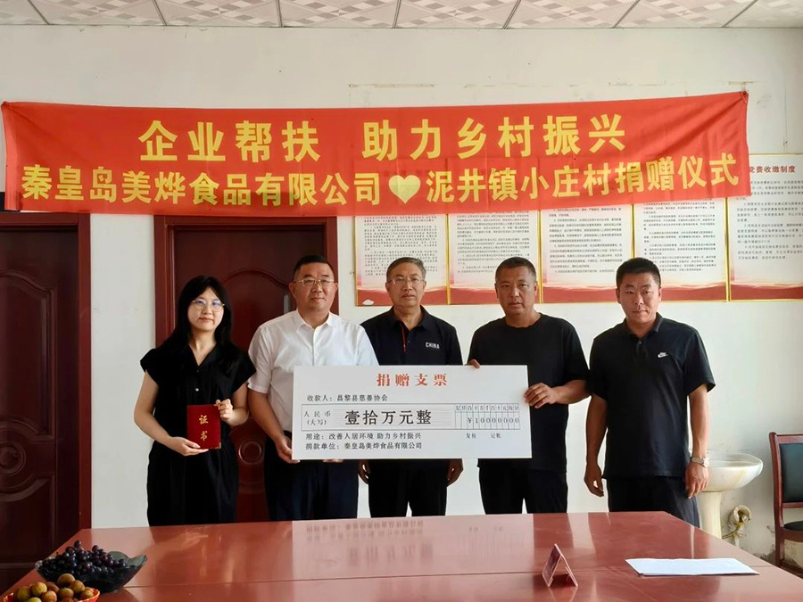 6月18日(ri)上午,一(yi)場充滿溫(wen)情(qing)與(yu)希望的捐(juan)贈儀式在(zai)昌(chang)黎(li)縣(xian)泥井(jing)鎮(zhen)(zhen)小莊(zhuang)村(cun)舉行。秦皇(huang)島(dao)美燁食品有限(xian)公司向(xiang)昌(chang)黎(li)縣(xian)慈(ci)善(shan)協會捐(juan)贈 10 萬元,專項用于小莊(zhuang)村(cun)人居環境改(gai)善(shan),為鄉村(cun)振興注入新動能。昌(chang)黎(li)縣(xian)政(zheng)協副主席(xi)杜希杰,泥井(jing)鎮(zhen)(zhen)鎮(zhen)(zhen)長李富國、小莊(zhuang)村(cun)黨支部書記(ji)馮(feng)樹利出席(xi)儀式,與(yu)村(cun)民(min)代表(biao)共同見(jian)證這一(yi)暖心時(shi)刻。